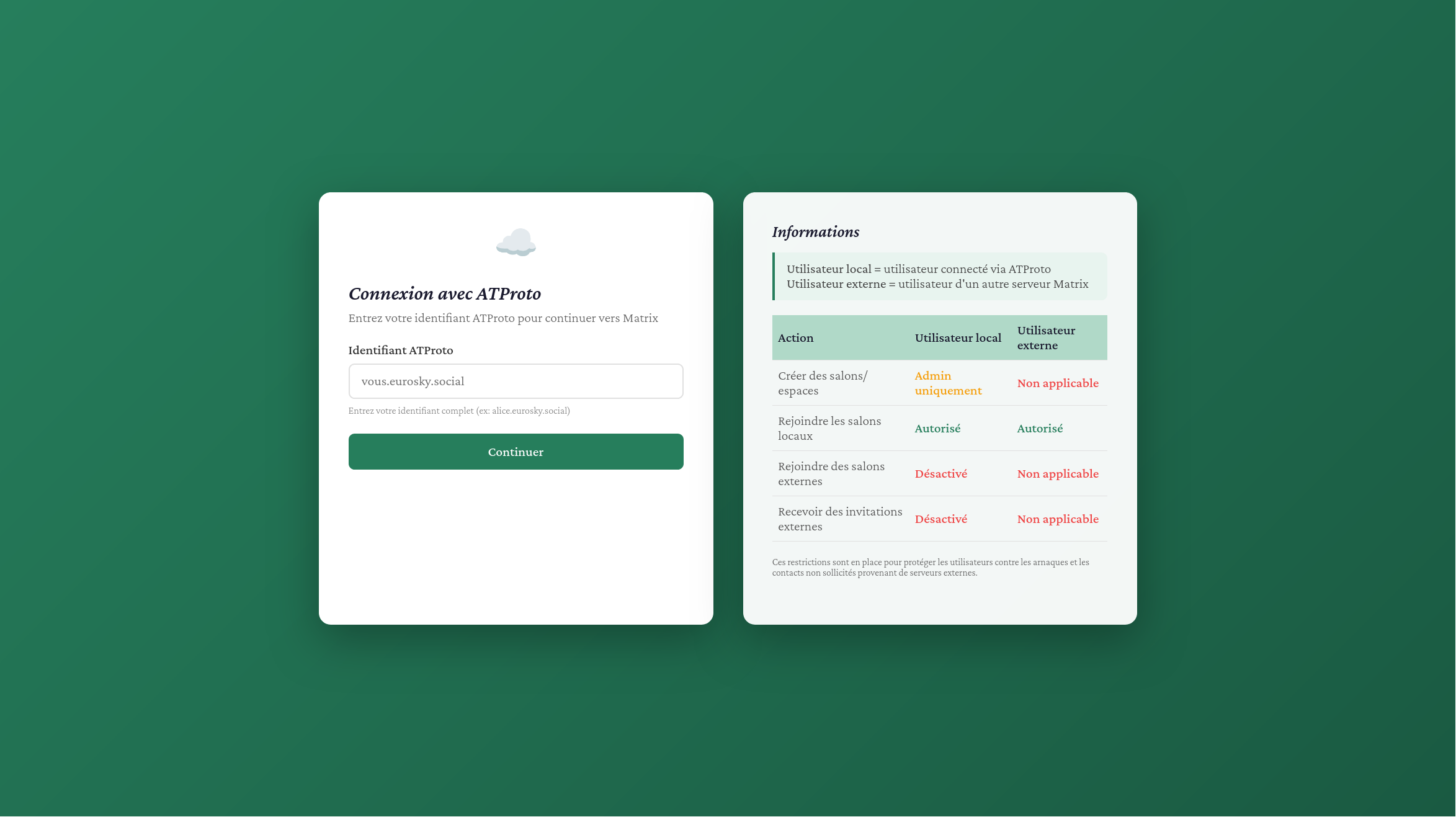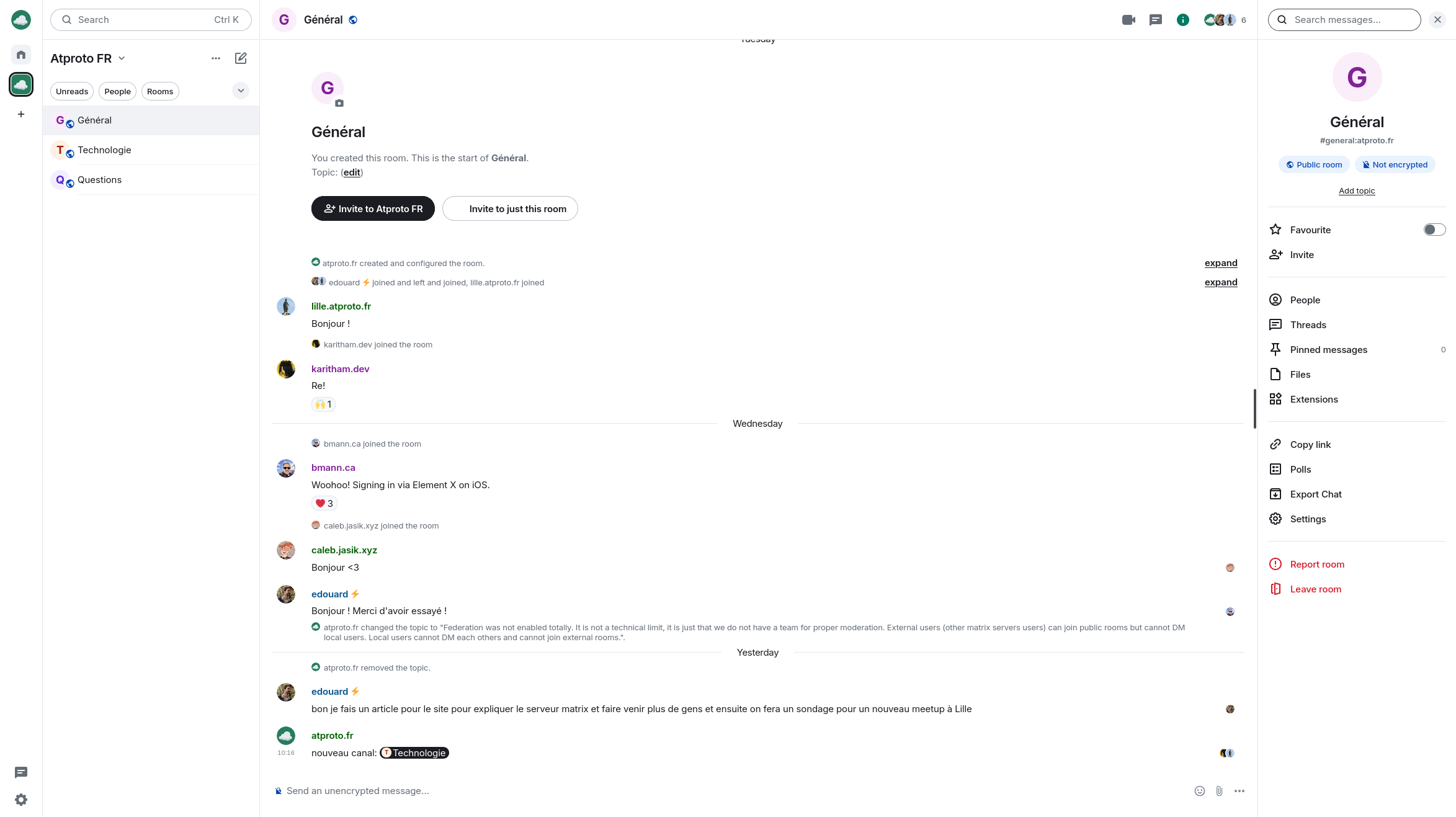 matrix.atproto.fr - un salon de messagerie utilisant vos identifiants Atproto